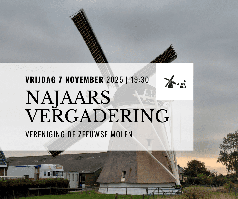 Het laatste Zeeuwse molennieuws per e-mail ontvangen? Schrijf je in voor onze nieuwsbrief Zeeuwse Molens. Ook kun je ons via Facebook en Youtube ons volgen
